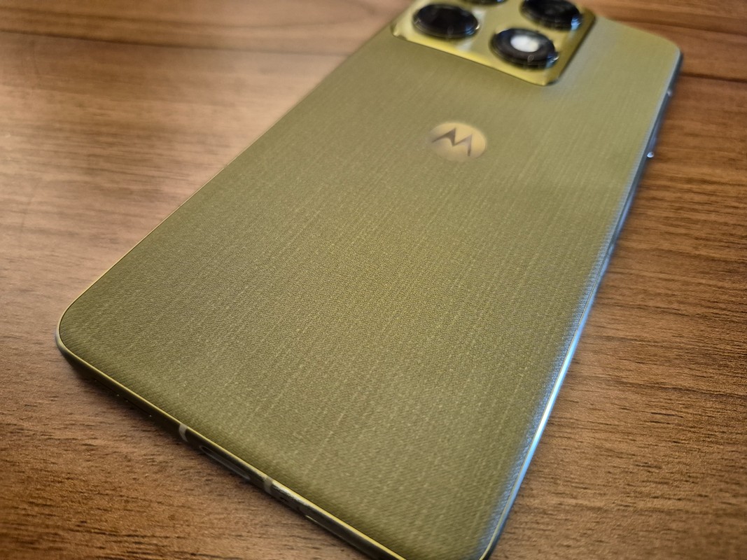 Yang bikin saya jatuh cinta adalah varian warna Martini Olive dengan anyaman halus seperti kain kepar. Teksturnya terasa unik di tangan, anti sidik jari, dan memberikan kesan eksklusif. Motorola juga tetap setia pada kenyamanan genggaman. Tepinya lembut, konturnya pas, jadi betah dipakai scrolling medsos atau baca artikel berjam-jam.